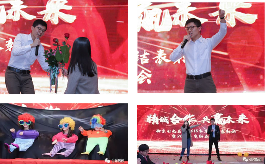 引光醫(yī)藥多才多藝的小伙伴們精心準(zhǔn)備的節(jié)目一個個閃亮登場,臺下歡聲笑語,其樂融融,不斷響起的掌聲和歡呼聲是對演出最好的認可。 團舞《Carzy》展現(xiàn)的是我們引光人對工作的激情、執(zhí)著與瘋狂;歌曲《我相信》和《夜空中最亮的星》,表明了在公司管理團隊的帶領(lǐng)下,我們引光人充滿自信,奮力前行、不斷創(chuàng)新,如群星一般閃耀星空;歌曲《遇見》唱出了我們的心聲:遇見,遇見蓬勃發(fā)展的引光,遇見亦師亦友的你們,遇見值得喝彩的自己,是我們這輩子最大的幸事。