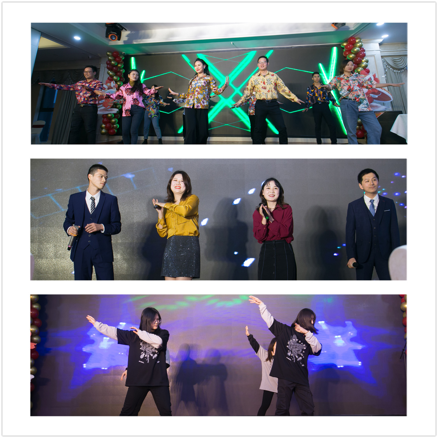 年會(huì)之所以令人期待,當(dāng)然少不了小伙伴們準(zhǔn)備的各種“花”式節(jié)目。舞蹈節(jié)目就是年會(huì)的“嗨”點(diǎn),無(wú)論是運(yùn)營(yíng)一部的《港風(fēng)串燒》還是北京CRC的《激情串舞》,都體現(xiàn)著引光人洋溢的青春、活力與激情;歌曲《愛的飛行日記》、《我們羞于表達(dá)的感情》、《最初的夢(mèng)想》,表達(dá)了引光人對(duì)引光大家庭和引光事業(yè)的熱愛與夢(mèng)想;小品《精神小伙訓(xùn)練營(yíng)》在歡樂(lè)聲中體現(xiàn)了引光的學(xué)習(xí)和幫帶精神;壓軸大合唱《明天會(huì)更好》飽含著引光大家庭所有成員對(duì)2020的美好憧憬和祝愿。