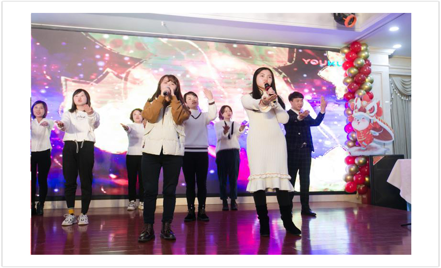 LED屏幕上播放著小伙伴們2019在引光大家庭工作、生活的精彩瞬間和點(diǎn)點(diǎn)滴滴,以及各部門對(duì)2020年的美好祝愿,年會(huì)現(xiàn)場(chǎng)洋溢著溫暖、快樂(lè)的熱烈氛圍。