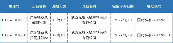 9月共1個中藥創(chuàng)新藥獲批上市,為武漢光谷人福的廣金錢草總黃酮膠囊;下表為9月批準上市新藥信息。