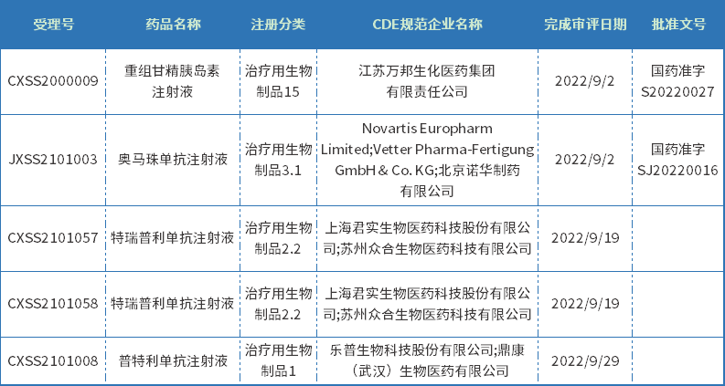 9月共4個生物制品獲批上市;下表為9月獲批生物制品信息。