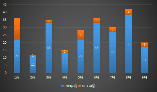 9月新增化藥2類改良型新藥20個(按受理號計),其中IND申請17個,NDA申請3個,共涉及15個品種;2022年1-9月CDE化藥改良型新藥申請受理情況詳見圖四。